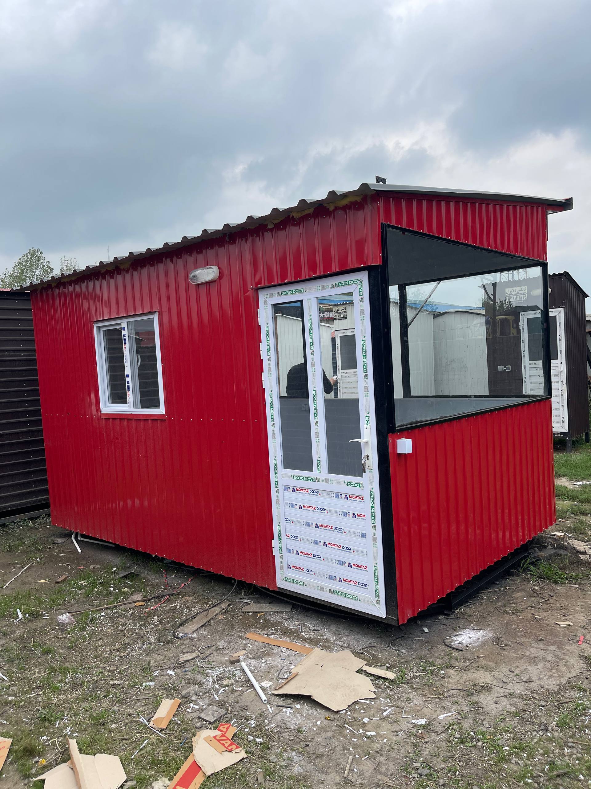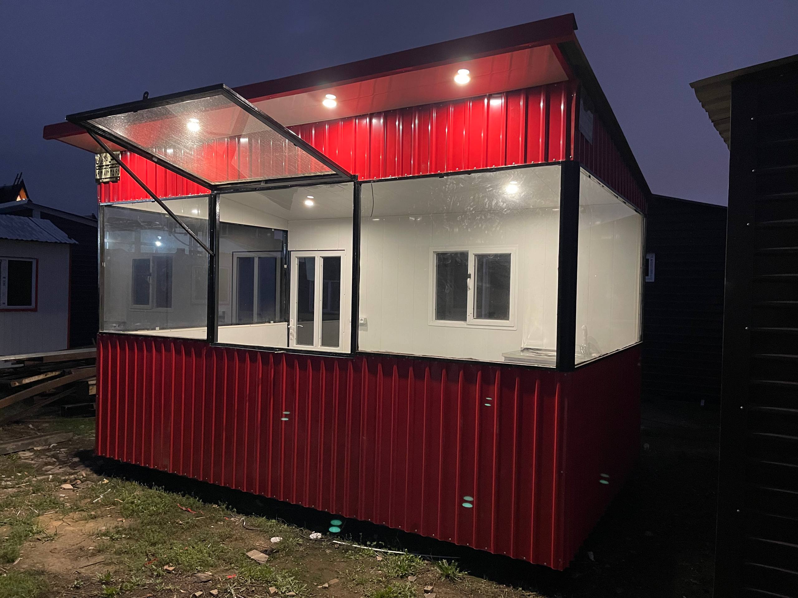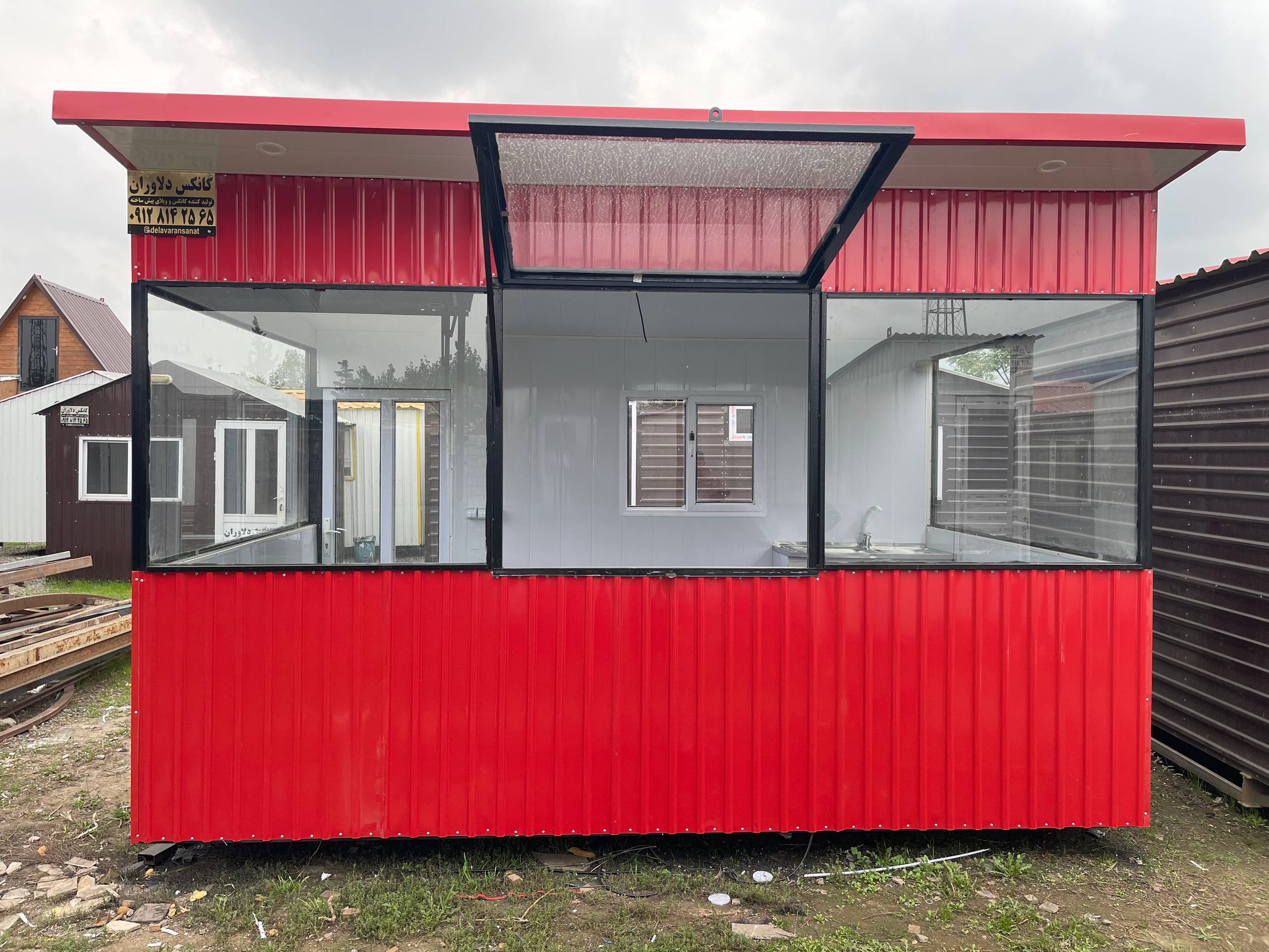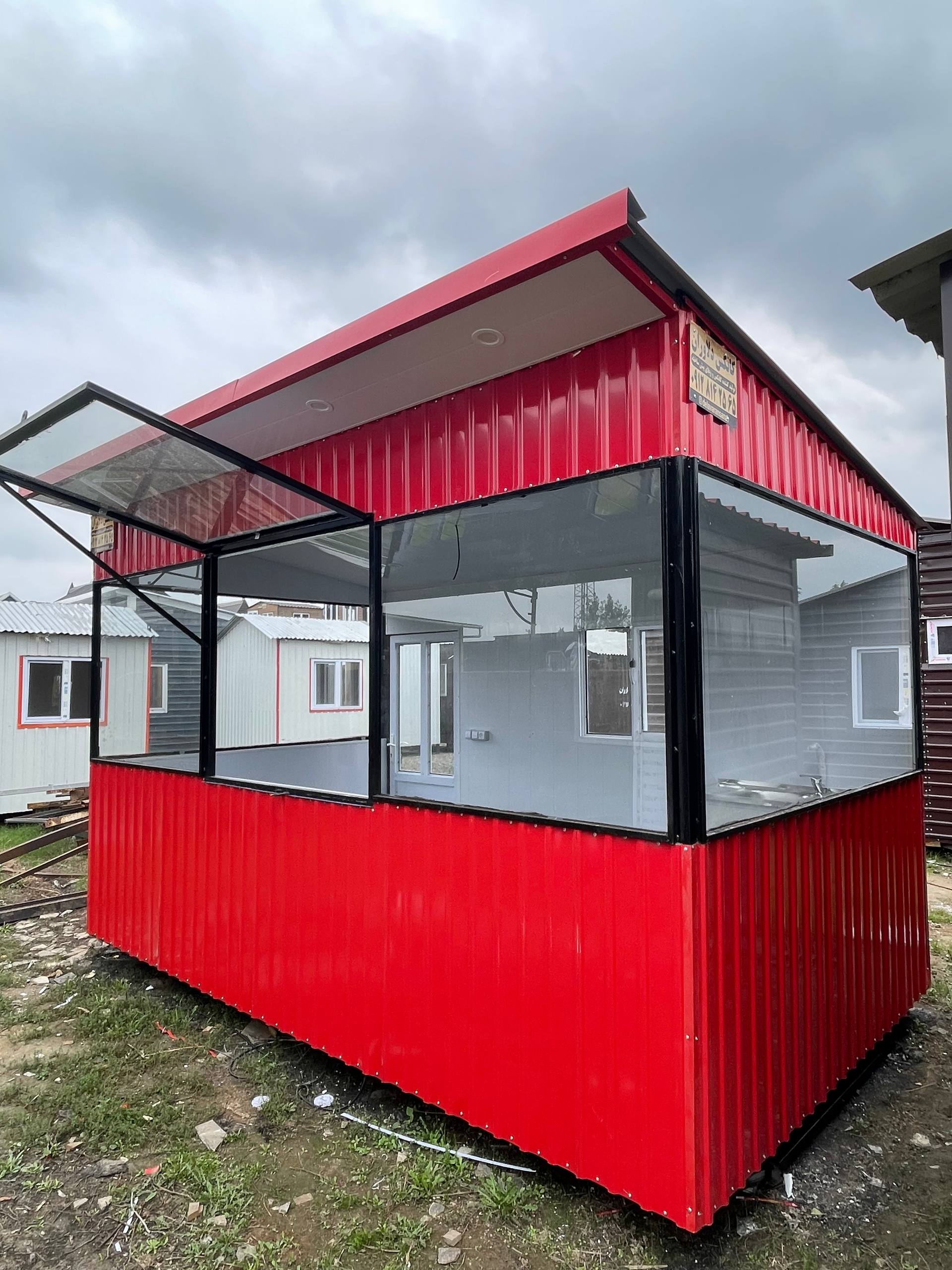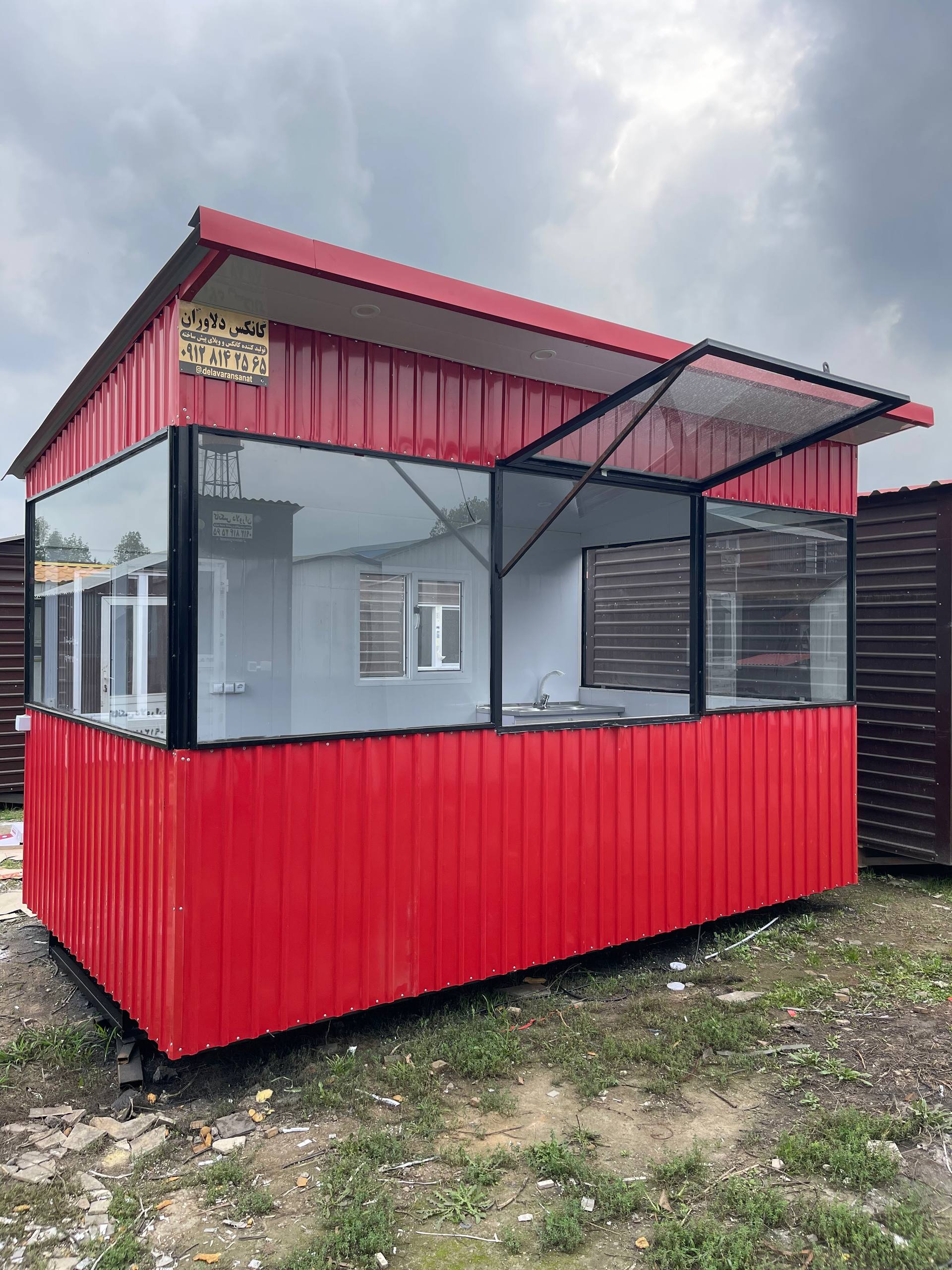 کانکس فروشگاهی ۴×۲/۴ با نما شیشه و ورق استاتیک رنگی، یکی از زیباترین و کارآمدترین محصولات دلاوران صنعت است.